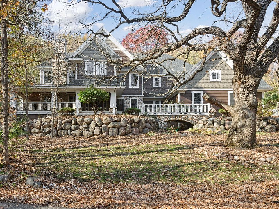 Custom built Thomas Bren home! With great spaces for entertaining and comfortable living, this home provides the perfect blend of elegance and functionality. Main level features chef's kitchen with large center island, range w/ hood and wall oven. Separate formal dining and cozy living room w/ gas fireplace. Also on main level, family room, spacious office, mudroom and pantry & powder room. 3 bedrooms up. Expansive primary boasts fireplace, walk in closets, ensuite bathroom and bonus rooms. 2 more bedrooms w/ ensuite bathrooms and convenient upstairs laundry. LL has amusement room with full wet bar. 4th bedroom & full bath. Plus, an exercise room w/ sauna! Front porch and backyard patio provide an ideal space for outdoor gatherings w/ a bridge over the tranquil pond and wooded lot. Also on 1.4 acre property: gazebo, greenhouse and playhouse. Interior is freshly painted. $270k new roof and siding just installed, warranties included.