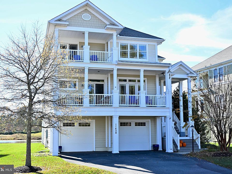 This exceptional 5-bedroom, 4.5 bath residence offers over 4,600 sq ft of refined living space in the prestigious gated community of Glen Riddle. The open-concept main level showcases a stunning newly renovated gourmet kitchen with upgraded countertops, top of the line stainless steel appliances, double islands, and all-new flooring throughout. The living area welcomes guests with its soaring two-story ceiling, cozy fireplace, and abundant natural light. The spacious primary suite features a private balcony, walk-in closets, and a spa inspired bath complete with soaking tub and dual vanities. A newly added mudroom with custom cubbies provides stylish functionality, while the new laundry room with built-ins makes daily living effortless. Upstairs, the third floor offers three additional bedrooms, including a second master suite with built-in desk and bar, perfect for guests or extended family. The second-floor office, framed by rustic barn doors, overlooks the golf course and provides the ideal space for working from home. The lower level is designed for relaxation and entertainment, featuring a large shiplapped recreation room with wet bar, guest bedroom, and full bath, perfect for game nights or weekend visitors. Additional upgrades include a new Rinnai tankless water heater and a new lower level HVAC system. Outdoor living is equally impressive with three balconies to take in the scenic golf course and pond views. A two-car garage and resort style amenities complete the package, including clubhouse, pool, marina, fitness center, and championship golf. All this just minutes to Ocean City beaches, dining, and shopping.