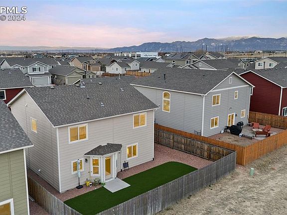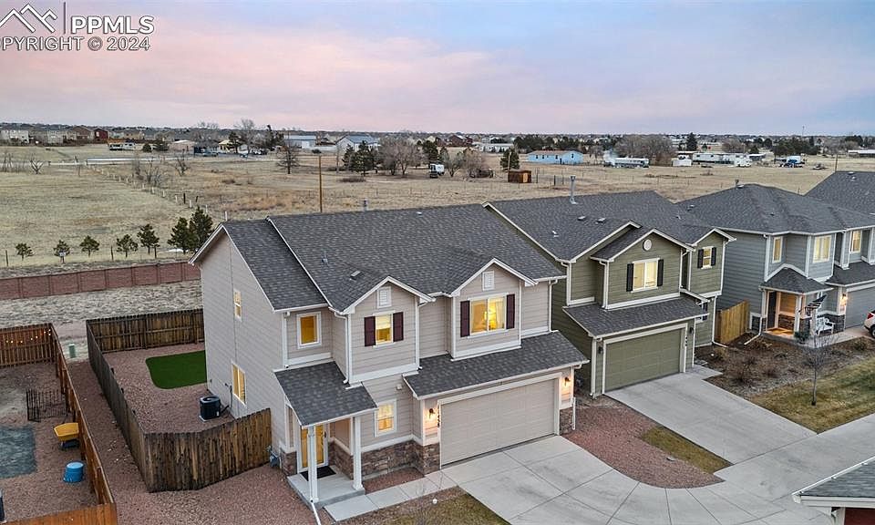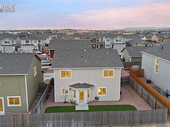 Welcome to this stunning 3-bedroom, 3-bathroom home in the desirable Courtyards at Woodmen Hills West community. This property offers the perfect combination of modern living, convenience, and comfort. The open concept design of the main level is ideal for both relaxing and entertaining, with spacious living areas and plenty of natural light. The heart of the home is the beautifully designed kitchen, featuring dark cabinets, a large kitchen island, and ample counter space, perfect for meal prep or hosting friends and family. Throughout the main level, you'll find elegant Luxury Vinyl Plank (LVP) flooring that is both durable and stylish. Upstairs, the home offers three generous bedrooms, including a master suite with its own private bathroom. The additional bathrooms are equally well-appointed, with modern finishes and thoughtful touches throughout. The low-maintenance backyard features artificial turf, creating a green oasis that’s easy to care for while still providing a beautiful outdoor space to relax or entertain. Whether you're enjoying a quiet evening at home or hosting guests, this backyard offers versatility and ease. The Courtyards at Woodmen Hills West community is loaded with amenities that enhance the quality of life for its residents. The recreational center boasts both indoor and outdoor pools, perfect for enjoying Colorado’s sunny days. There are also miles of walking trails to explore, allowing you to enjoy the stunning natural surroundings. The community is conveniently located near shopping and dining options, making everyday errands a breeze. Additionally, the home is situated within the highly regarded District 49 school district, which makes it a great choice for families. This home truly offers a lifestyle of comfort, convenience, and community. Don’t miss the chance to make it yours. Schedule a showing today!
