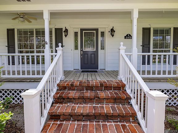 Desirable Pecan Creek in St. George! This beautifully updated, move-in-ready 3 bedroom, 2 bath home sits on a spacious corner lot - perfect for additional parking or entertaining. Enjoy the inviting front porch, ideal for relaxing or hosting guests. The fully fenced backyard features an extra large deck area and a large storage room/workshop off the carport. Inside, you’ll find granite countertops, stainless steel appliances, breakfast bar and wood-look ceramic tile flooring throughout—no carpet! The cozy brick fireplace anchors the living room with trayed ceilings. Dining area features an oversized window and built-in cabinets. Primary suite also has trayed ceilings while the primary ensuite bath boasts a custom shower, double vanity, new toilet, and a large walk-in closet and built-in linen storage. All bedrooms are spacious and provide ample closet storage. Conveniently located near Airline Highway and Jefferson Highway, with quick access to I-10, local restaurants, parks, and shopping. Washer and dryer remain at no value. 100% financing available.