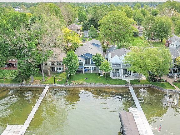 Beautiful sunset views at this gorgeous lakefront home fully renovated by Hursey Construction in 2014/2015 with finished walkout lower level. Plenty of room for family & guests, this open floor plan accommodates 4 bedrooms, 3.5 baths, great room, large foyer, family room, Sun porch, separate laundry room, kitchen, dining & office space, plus an unfinished 800 sq. ft. bonus room for future living & entertaining space. Light neutral paint colors & trim package, new flooring throughout plus upgraded easy-care hardwood laminate on main floor. High end amenities thru out including en-suite lower level along with 2 more bedrooms. New Hunter ceiling fan on Sun porch w/built in heater to keep you warm on chilly days & nights. Upgrades include new electric & plumbing, new furnace, new on-demand water heater, new water softener, new AC, upgraded to 200 AMP w/separate electrical boxes & thermostat control for each level, new insulation, 2 new gas fireplaces, new appliances, new built in china cabinet & storage closet, wired for alarm system, new Anderson windows & doors except when older windows could still be used. Master bedroom office area is plumbed for double vanity. New parking for 9 cars (7 in driveway & 2 in new oversized garage w/room for lake toys). New 800' unfinished bonus room above garage (bunkroom, another living area, it's up to you!). White trimmed coastal blue shaker shingles & vinyl siding pops on this lakefront home. Covered front porch, professional landscaping w/shrubs & perennials. Take full advantage of lake views on the open deck w/new Trex decking or covered patio. 8' vinyl privacy fence added in 2018. Lake Wawasee is the largest natural lake in Indiana; 25 miles of shoreline, 3000+ acres in size, with a maximum depth of 77 ft. This gorgeous lake is filled with relaxation, fun & recreation as an all sports lake for boaters & skiers, complete with a sandbar, 28 species of fish, boat accessible restaurants, marinas & yacht clubs. Sandy beach area around pier for swimming & having fun. Pier to watch weekend sailing competitions & Sunday morning wooden boat parade. Watch 4th of July fireworks from your patio or pier. Enjoy weekend getaways, retirement or year-round lake living. Centrally located only 2.5 hours from either downtown Chicago or downtown Indianapolis, or an easy 1 hour from South Bend/Notre Dame or Fort Wayne. Pier #82. Pristine condition!