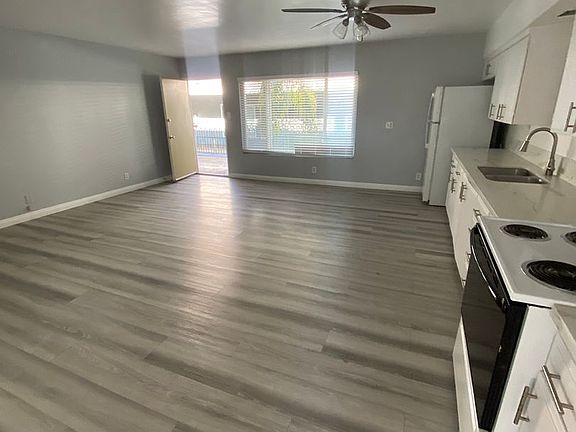 Open floor plan with great room for living area, dining & kitchen - Newly renovated lower apartment in a controlled access community -New vinyl planks throughout - Newer new faux wood blinds - Freshly painted kitchen & cabinets with newer Quartz countertops, a double sink & gooseneck faucet - Fridge & new electric stove included - Newer ceiling fans in main area & bedroom - Mirrored double closet doors in bedroom - Bathroom has updated fixtures/ vanity, a full size tub & tile bathroom shower walls -Laundry facility onsite *One small pet 20 lbs. or less is welcome with a pet license (Breed restrictions apply). *Installation of window a/c or satellite dish are not allowed. Proof of renters insurance and utility service turn-on is required upon your move-in. This is a one (1) year lease. To view this unit please come into our office between 9-3:30 PM Monday-Saturday, please bring a $40.00 CASH refundable deposit and your ID. 4th St. Long Beach, CA, 90802.