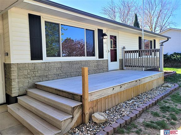 Great Ranch home on the edge of Goehner. Relax and enjoy all the sunsets as you sit on the large composite decking on the west side of the house. This lovely home features a large living room, kitchen (all appliances stay) with informal dining with patio doors that exit out to another large 2 level deck on the rear of the house. 2 bedrooms, 1 with a walk in closet and a large bathroom with a separate tup and a corner shower unit. The basement features a large family/rec room with cabinets for storage, a bedroom with egress window and a ¾ bath with laundry. Narrow storage area with drain tile and sump pump. The rear yard is very large and completely fenced. 3 storage units provide space for alot of that exterior storage. The 2 stall attached garage is 24 x 24 and you have an additional 2 stall carport on the front. A great shaded area for gatherings. Additional parking is located off the alley.