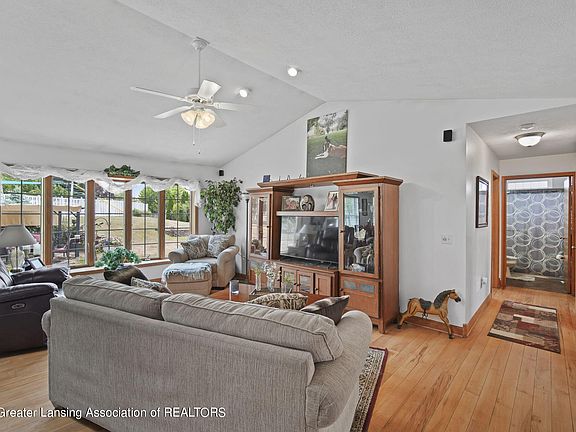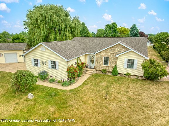 Welcome to this charming custom-built ranch home, situated on over half an acre, has everything you've been searching for. With meticulous care and attention to detail, this one-owner home was built in 2006 by Laux builders and offers a perfect blend of convenient amenities and energy efficiency. Upon entering you'll appreciate the open floor plan leading to the spacious living room bathed in natural light and features newly redone hardwood floors. Kitchen boasts stainless steel appliances and granite countertops opening up to a delightful dining space with sliding door that opens to a lovely patio for enjoying your favorite drink on sunny mornings. Primary bedroom boasts an ensuite bathroom and walk-in closet. Bedrooms 2 & 3 also on the main level and feature large closets and ample space to personalize. The full partially finished basement is a versatile space with 2x6 exterior walls, foam block foundation and egress window providing endless possibilities for customization, hobbies and relaxation including pool table, juke box, tanning bed, and sauna. Attached 2.5 car garage. New furnace installed 6/2023. New water heater installed 2023. Need extra space? No problem! The property also includes a 30x24 pole barn built in 2018 and a 10x10 yard shed with plenty of room for all your equipment, tools and toys. The lovely back yard is adorned with mature trees and even includes a small orchard with a variety of fruit trees including apples, pears, peaches and plums. Additionally, you'll find a raised bed, raspberry and grape vines, perfect for the aspiring gardener. Relax and unwind by your 32x16 fenced/gated heated pool with new liner and sun sail, creating a resort-like oasis in your own backyard. Other notable features of this remarkable property include a central vacuum system and a Generac generator, ensuring your comfort and peace of mind. With move-in readiness and nestled in a quiet cul-de-sac, this property offers a serene and idyllic setting. Don't miss out on the opportunity to make this extraordinary home yours. Schedule a viewing today and experience the best of comfortable and convenient living. A licensed agent must be present during showing.