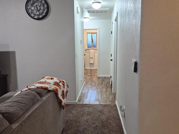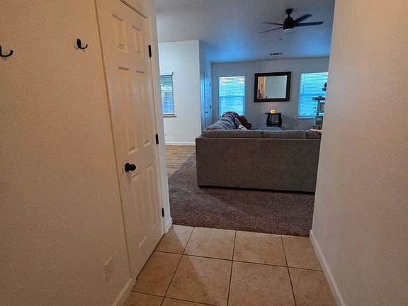 both secondary bedroom also feature walk-in closets.The residence offers ample storage solutions, including two hallway closets, an entry closet, a kitchen pantry, and a laundry room, pantry. Recent upgrades include new fans, lighting fixtures, power switches, and outlets throughout the home.