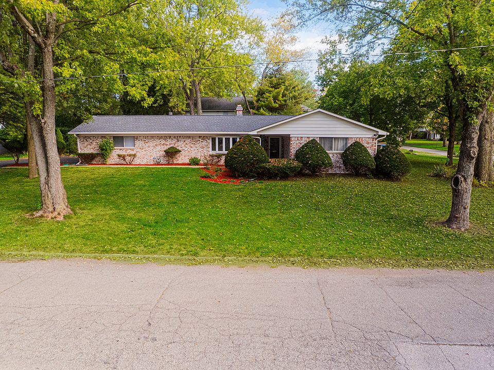 Nestled on a peaceful, tree-lined corner lot, this all-brick ranch offers timeless character with a blend of comfort, light and space on a beautiful half-acre in one of Washington Township's most convenient northside locations. With 3 bedrooms, 2 full baths, and 1,774 square feet, this well-maintained home features thoughtful updates and classic design. Step inside to discover generous light-filled living spaces highlighted by a double stone fireplace- a rare centerpiece with added architectural charm. The parquet wood floors add warmth and texture, while the vaulted family room features updated skylights with motorized sun shades and an expansive wall of windows that fill the space with natural light. A large bay window brightens the living room, creating the perfect spot to enjoy the peaceful, established neighborhood setting. The home's flexible floor plan offers easy flow between multiple gathering areas-offering comfort and versatility-ideal for everyday living or entertaining. The kitchen features a built-in cooktop/stove and an electric indoor grill/griddle with a downdraft ventilation system. The primary bedroom offers a private full bathroom and double closet for convenient storage. Two additional bedrooms provide flexibility for guests or home office. Outside, the private backyard offers a park-like setting with mature trees, a deck, and a brick patio with a firepit-for quiet evenings or hosting friends. The 8'x11' storage shed includes a loft and new roof, offering added yard equipment storage. The attached two-car garage, large drive, and landscaping add convenience and curb appeal. Recent updates include a new roof on the home and shed, carpeting, and skylights (Fall 2025). Just minutes from Broad Ripple, Holliday Park, and the 86th Street corridor, this home combines classic design with a central northside location with quick access to dining, shopping, and I-465, while remaining tucked in a serene neighborhood.