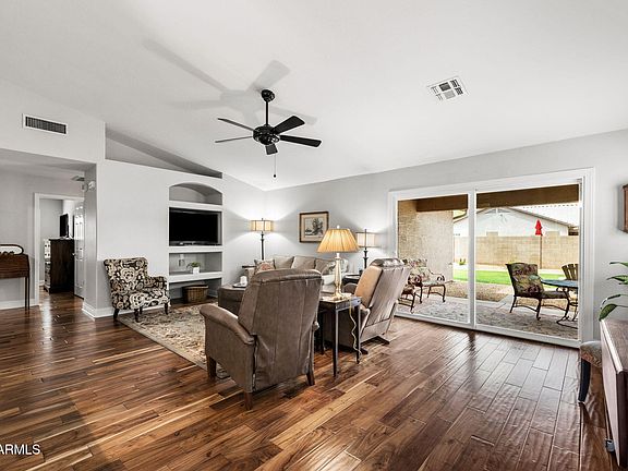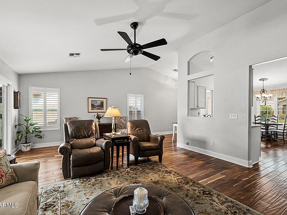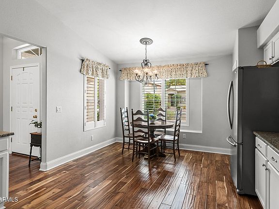 Step into this beautifully updated single-story home in one of Gilbert's most sought-after locations. Bright and inviting, the open layout is anchored by rich engineered hardwood floors, with timeless tile in the bathrooms and laundry for easy care. Plantation shutters and newer dual-pane windows (2015) frame every room, bringing in natural light while adding classic charm.