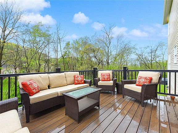 The best of both worlds, this gorgeous, brick two story in Hempfield Area School District provides easy access to shopping and entertainment while nestled in the privacy of a beautiful wooded lot. Immaculate home, with only one previous owner. Glass front door with transom window and windows throughout the four bedroom home provide natural lighting and views of the surrounding forest. First floor features sought-after 9 foot high ceilings with beautiful crown molding. Fully equipped kitchen with stainless steel appliances, oak cabinets, and ceramic tile flooring opens to a beautiful deck: ideal for entertaining. Kitchen access to convenient, first floor laundry. Master suite with tray ceiling, walk-in closet, and updated master bath. Master bath features a large, soaking tub and custom, quartz countertops. Finished basement with full bath adds even more room to this spacious home! Massive, two-car garage with epoxy coated floor. Large, insulated, utility shed with working electricity.