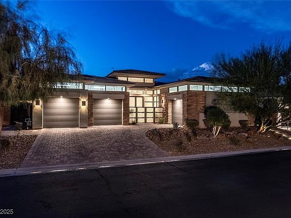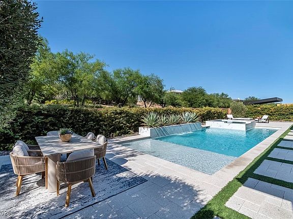 Located in the prestigious guard-gated community of Silver Ridge at The Ridges in Summerlin, this contemporary single-story home offers 3 bedrooms plus a versatile den along with an open floor plan designed for modern living. The spacious great room flows seamlessly into the gourmet kitchen, dining area, and stylish bar, with expansive glass doors that create a true indoor/outdoor experience. A large covered patio overlooks the private backyard with no neighbor directly behind you, offering the perfect setting for entertaining or quiet relaxation. The den provides an ideal space for a home office or flex room. High ceilings, abundant natural light, and a thoughtful layout enhance the home's sense of space and comfort. Enjoy the lifestyle of The Ridges with access to Club Ridges, featuring a fitness center, pools, tennis, and more-all just minutes from Downtown Summerlin's shopping, dining, and entertainment.
