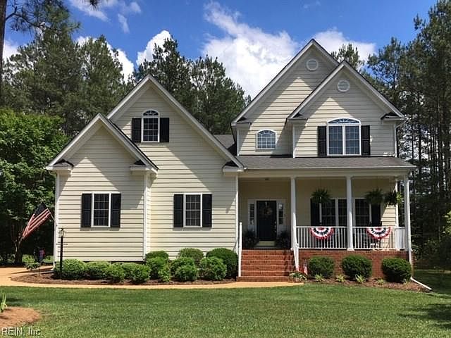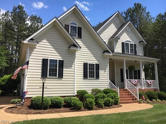 This home is nestled on a nice semi-wooded lot located in the Brickshire Community of New Kent in between Williamsburg & Richmond. Formal dining room, with beautiful moldings, living room with gas fireplace and hardwood floors. Eat-in kitchen, plantation shutters, pantry, hardwood floors and custom cabinets. Oven and built-in microwave, 5 years old. Downstairs master with large walk-in closet. Master bathroom has tile flooring, shower, jetted tub and double sinks. Downstairs laundry room. Open landing upstairs with three bedrooms, full bath and a large room over the garage. Walk-in storage. Upstairs HVAC replaced in 2017.