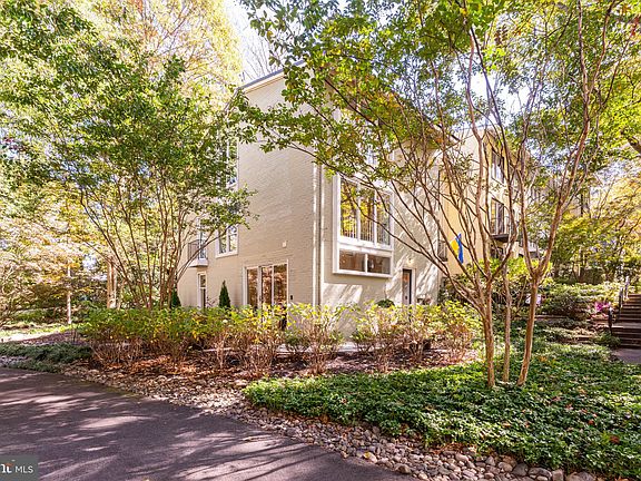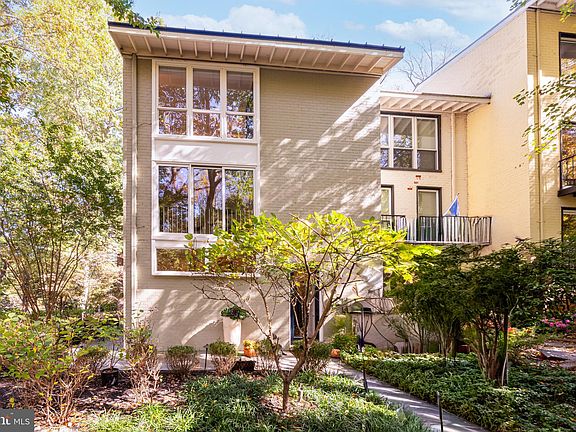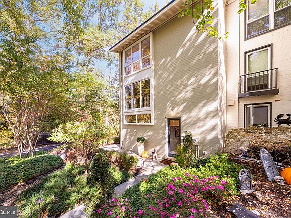 A truly one-of-a-kind property, beautifully sited on a gently sloping corner lot surrounded on three sides by lush forest. The property extends well beyond the backyard patio, connecting seamlessly to Reston Association (RA) common area that meanders down to the community path and dock—creating the feeling of a private, park-like retreat culminating at the shore of Lake Anne. Depending on the season, the home offers ever-changing water views that ebb and flow with nature. Designed by renowned mid-century modern architect Clothilde Woodard Smith, Waterview Cluster was inspired by the pastel-colored brick houses that dot the hillsides of Portofino, Italy. Built on 28 acres—18 of which are preserved woodland—Waterview Cluster is a hidden gem within Reston, offering both community and serenity. 11464 Orchard Lane brilliantly exemplifies Smith’s mid-century modern philosophy of blending indoor and outdoor living through the use of wide expanses of glass and natural materials. Stepping through the windowed front door, you’re greeted by a sleek row of built-in cabinetry—one concealing a high-end wine cooler and beverage refrigerator, ideal for entertaining. Beyond a playful smoked-mirror pocket door lies the washer/dryer and storage closet. The thoughtfully designed kitchen provides ample storage, featuring contemporary upper cabinets that lift effortlessly on hydraulic hinges, clever lower cabinetry for efficient organization, and high-end Bosch appliances. A stainless-steel under-mount sink with a single-handle brass faucet completes the clean, modern aesthetic. The true centerpiece is the impressive 10’ x 5.5’ quartz island, a striking focal point perfect for cooking, dining, and conversation. A dramatic mid-century modern fireplace anchors the adjoining living space—an architectural statement year-round, providing both visual warmth and seasonal coziness. Expansive floor-to-ceiling windows and sliding glass doors invite the outdoors in, filling the home with natural light and a shifting panorama of trees, sky, and water. Step outside to the large slate patio, ideal for al fresco dining or relaxing among mature trees, birdhouses, and curated landscaping. Gather around the natural river-rock fire pit for evenings under the stars. Upstairs, a wall of custom moulding along the staircase adds sculptural dimension and texture. The second floor features three spacious bedrooms. The rear bedroom—formerly the primary suite—includes an ensuite bath and two closets (one walk-in), with wall-to-wall windows capturing sweeping views of the wooded gardens, lake, and community dock (perfect for kayaking or canoeing). The front-facing bedroom features a charming Juliet balcony, a whimsical touch that brings the outdoors in. The primary suite is a private retreat, with lofty cathedral ceilings, a statement dandelion chandelier, and walls of custom cabinetry. It’s a serene space filled with light and architectural elegance. Leading on to an awe-inspiring slate patio off the bedroom facing the lake. From the high elevation the view is compelling. Each of the home’s three full bathrooms was designed with understated sophistication and a touch of glam, featuring gilded mirrors, marble, quartz, and porcelain finishes, along with custom glass shower doors. Additional highlights include a Bosch front-loading washer and dryer, Nest thermostat, and integrated security system. Outdoors, a walk-around flagstone path, terrace with cast iron railing, and professionally designed lighting add sophistication and ease. It’s a short stroll to Reston Town Center but even closer walk to Lake Anne Plaza where there are cultural events, music festivals and several Reston events that celebrate many of the town’s tradition, and lively farmers market, the beloved Reston Used Book Store, the Coffee House, and during the summer months, paddleboat rentals, and the artist in residence gallery on the plaza level of Heron House.