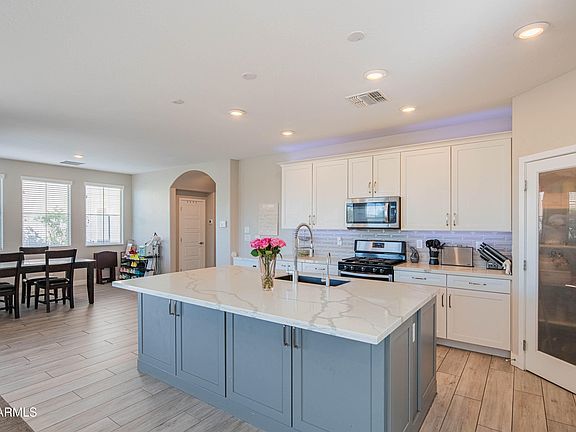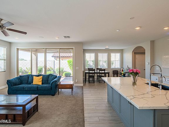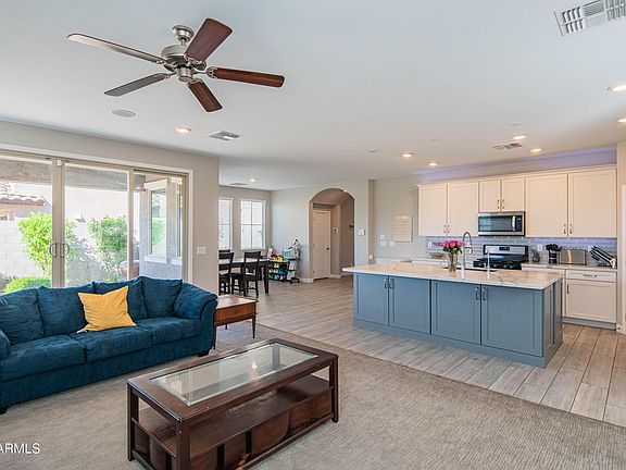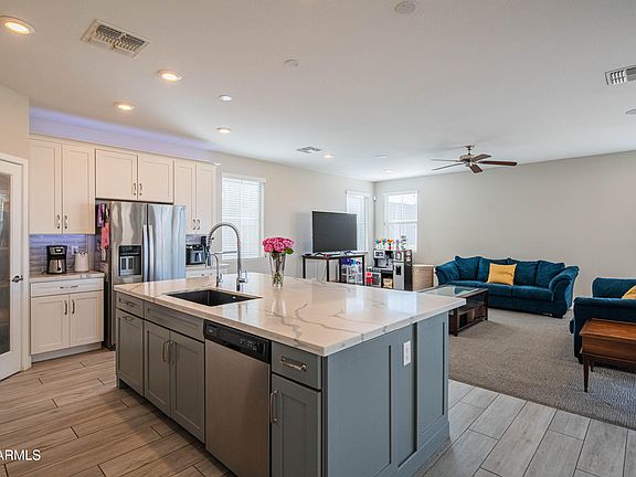 Welcome to this beautifully maintained 4-bedroom, 2.5-bathroom two-story home located in the desirable community of Estrella Mountain Ranch. This stunning property features an open floor plan with a spacious kitchen showcasing quartz countertops, a large island, stainless steel appliances, and a walk-in pantry. The huge primary suite offers a generous walk-in closet and plenty of natural light. Enjoy peace of mind with a new tankless water heater and relax in the beautifully landscaped backyard with breathtaking mountain views. Residents of Estrella Mountain Ranch also enjoy access to community amenities including lakes, fitness centers, pools, trails, and more!