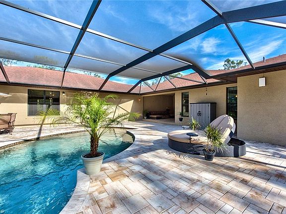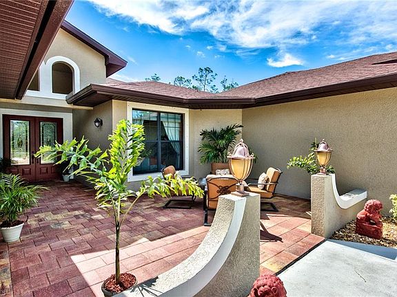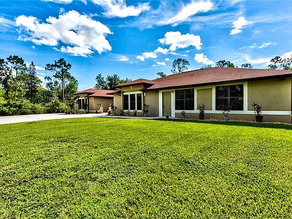 Beautiful home in a country setting on 2.5 sprawling acres designed for family life/relaxing & entertaining. Fall in love with this 4 bd, 4 full bath pool home that includes a huge bonus room with its own entrance for entertaining guests and family. As you enter the private security gate you will notice the huge fenced yard w/extra large driveway, outdoor playground & wood burning fire pit. A welcoming front porch leads you to the main entrance. Inside you will be wowed by the open floor plan, spacious kitchen w/ lots of cabinets/counter space, accent lighting, huge walk in pantry, spacious family room and dining area. Party room offers a full kitchen & bar area with access to the pool area and additional multi purpose room and pool bath. Recent updates include saltwater pool, equipment and screened cage, whole house reverse osmosis system, hot water heater, well pump epoxy garage floor, crown molding throughout, comfort height toilets, tile backsplash in kitchen, wainscoting, built-in kitchen seating and more. Conveniently located to grocery stores such as Whole Foods and Publix, shopping, casual/fine 14 miles to Fort Myers Beach & 23 miles Sanibel/Captiva Island.