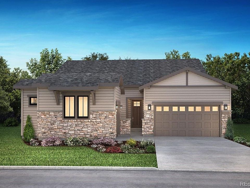 Beautiful Modern Single story home located in the desirable Solstice Community by Shea Homes. Solstice is surrounded by Chatfield Reservoir on 3 sides of the community and acreage parcels on the 4th side. This single-story, 2 bedroom, 2.5 bath, 3-bay garage, stainless steel gas appliances, and large covered back patio. Designer Finishes Include: Luxury Plank Shaw Supino Calcare flooring, MSI Carrara Marmi quartz kitchen counters with a full backsplash, Yorktowne Brockton Sea Salt kitchen perimeter and primary bath cabinets, Yorktown Brockton Celeste kitchen island cabinets, and Yorktowne Brockton Frappe remaining house cabinets. The Mirabelle Metropolitan Districts provide various services to the property and in addition to the estimated taxes, a $40 per month operations fee is imposed.