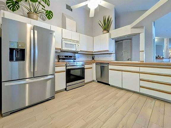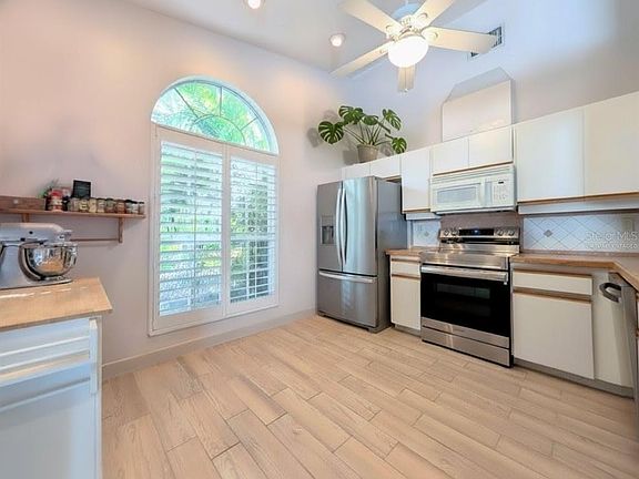 One or more photo(s) has been virtually staged. Ideally located in a NON FLOOD ZONE - High & Dry, surrounded by nature! Less than 5 minutes to Indian Rocks beach, Florida Botanical Gardens, and multiple nature parks: George C. McGough, John R. Bonner, and Walsingham Park. A rare find, tucked away at the end of a quiet street, this 3 bed, 2 bathroom home offers modern updates and peace of mind. Built in the 90s, this home features an open concept with soaring vaulted ceilings that create a spacious and inviting feeling throughout the main living areas. The bright kitchen features newer stainless steel appliances and the rare convenience of two pantries. The heart of the home is the expansive living and dining area, perfectly set up for entertaining with a stylish dry bar and dedicated beverage fridge. You'll appreciate the recent updates including new tile floors throughout, a newer tankless water heater (2021), and HVAC system (2022). Need extra room? Off of the living area there is a versatile den/office space where you will step through french doors out to the Florida room providing additional flexible space for hobbies and activities. The shaded backyard has mature trees, a newer vinyl fence and requires minimal landscaping/ upkeep. The two car garage features quality floor matting, car protection, and additional storage. Move in and enjoy your slice of paradise!