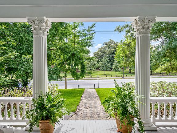 Experience exquisite Historical Downtown luxury living at its finest. Introducing the most impressive residence nestled on a beautiful, picturesque lot in the heart of Downtown on one of the cities finest streets. Exuding the epitome of upscale sophisticated living with modern features and also known as the 'Thomas Edward Ryles' home, this one-of-a-kind jewel is truly one of the most remarkable homes in Macon. Its presence, perfectly situated in the middle of Adams Street and overlooking one of Georgia's oldest parks, has attracted those with the most discerning taste for over a century. With its soaring twelve plus foot ceilings, arched foyer doorway, custom millwork and beautiful original hardwoods, the level of detail is truly unsurpassed. As you enter the home, the dramatic custom floor-to-ceiling windows flood the interiors with natural light and splendor. Enjoy entertaining in the spacious living room flowing effortlessly into the gorgeous dining room, large enough to host the grandest of gatherings. Cooking is a delight in the beautifully appointed cook's kitchen with stylish backsplash, thoughtfully designed layout, quartz countertops and large island that is perfect for creating culinary masterpieces. Offering seven fireplaces, original stained glass and tesla charging station, this upscale renovated beauty has been redesigned for modern functionality while keeping the charm of the original historical architectural features.