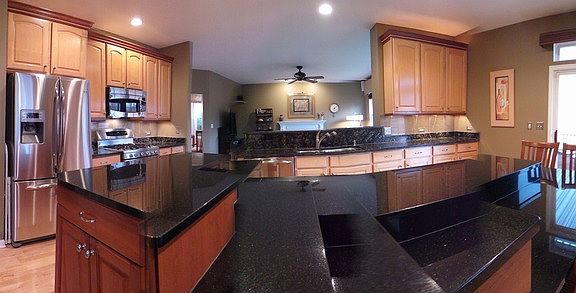 $150,000+ in upgrades! Kitchen out of a magazine! 2 different types of granite, 2 different color woods, built in ice maker and wine cooler/ multi tiered granite breakfast bar seats 6. Finished bsmt w/raised panel wood wet bar. Phenominal yard with 20 colorful trees for privacy. Electric Fence. New hardwood floors 11/10/13.The deck has a huge beautiful pergola w/ remote control awning. .Ask 4 list of upgrades