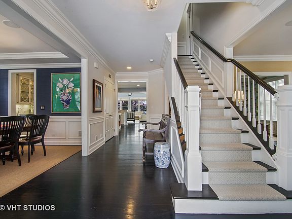 This stunning center entry colonial built in 2013 consists of the highest level of quality throughout the home with many upgraded features including smart home technology, beautiful millwork, custom built-ins, outdoor kitchen/fire pit & high end window treatments. Comfortably elegant main floor consists of a formal LR & DR w/ tray ceiling. Gorgeous white gourmet kitchen w/ custom cabinets, marble counters, high end appliances, separate eating area, walk-in pantry & butler's pantry. Sun filled family room w/ vaulted ceiling features fireplace & custom built-ins. Ideal mudroom & office w/ conferred ceiling completes 1st floor. All bedrooms on 2nd floor are en-suite. Large master bedroom offers 2 walk-in closets, master bath w/ heated floor, double vanity, large shower and jetted tub. 3rd floor features an additional bedroom, bath & bonus room. Lower level boasts rec room, wet bar, bedroom & full bath. Fully fenced yard & heated garage. Amazing location steps to train, schools & town!