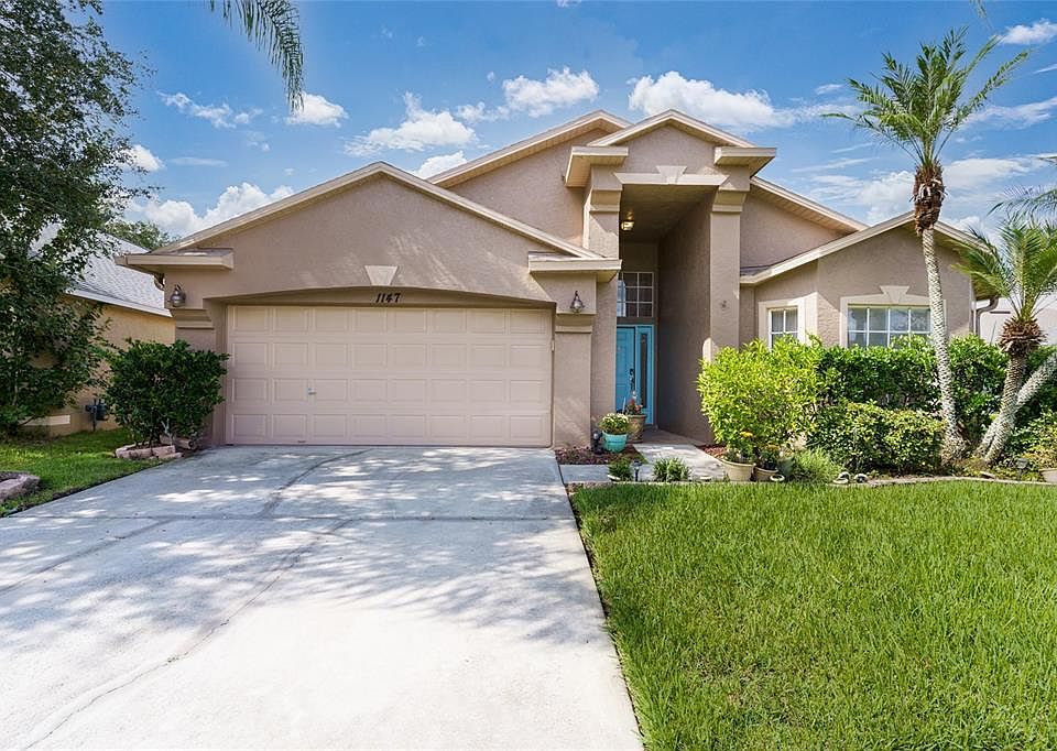 Honey Stop The Car! This is it! This stunning 4 bed 3 bath pool home w/ 1791 sq ft in the very popular Meadow Pointe community w/ NO HOA's and very low CDD fee ($611 year). Gourmet kitchen w/ granite counters, breakfast bar, plenty of cabinet space and a eating area in the kitchen. Separate Formal Dining Room and Living Room areas. Heated pool/spa w/ new gas line. Recent updates include: ROOF (2015) HVAC (2018) Water Heater (2020) Fridge, microwave & dishwasher (2020) Washer & Dryer (2017). Berber carpet throughout except in Dining room (Laminate) and tile in all wet areas. Sliders in Living Room & Master Bedroom go out to your screened lanai w/ heated pool and spa overlooking your beautiful and very peaceful pond view. Large rooms throughout the home, open floorplan. Master bedroom w/ large walk in closet and Bath w/ double sink vanity, separate tub and shower. Meadow Pointe 1 amenities include: Clubhouse, pools, fitness center, water park and more. Location is perfect and close to restaurants, lots of shopping, hospital, schools and easy interstate access. This home is the perfect place to Enjoy the Florida Lifestyle.