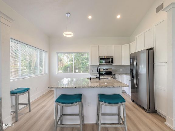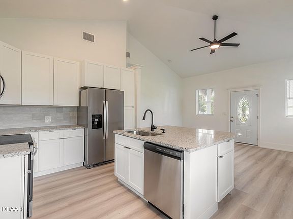 Welcome to your dream home that is high and dry! This fully renovated gem features three spacious bedrooms and two modern baths, designed with comfort and style in mind. Soaring high ceilings create an open, airy atmosphere, while brand new essentials like the roof, plumbing, electric, and HVAC ensure peace of mind for years to come. Enjoy beautiful luxury vinyl plank floors throughout, crisp white shaker cabinets, and gleaming stainless steel appliances paired with granite countertops in both the kitchen and bathrooms. The master suite is a true retreat, boasting a huge bathroom with double sinks and a walk-in closet. Convenient inside laundry room with sink! Situated on a corner lot, this home offers plenty of parking and is just blocks from the river, parks, and boat ramps—perfect for outdoor lovers and entertainers alike. Don't miss out on this stunning, move-in-ready beauty! Perfect for first time home buyers, investors and snowbirds! Yes, you can short term rental too! All information taken from the tax record, and while deemed reliable, cannot be guaranteed.