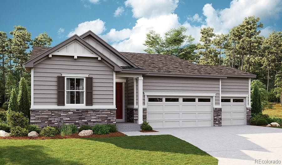 The Alexandrite plan is ideal for main floor living. A covered entry leads past a laundry into an open floorplan, featuring a kitchen with a center island and walk-in pantry, a dining area, and a great room with a fireplace. The owner's suite is adjacent, and includes a walk-in closet and private bathroom. You'll find two additional bedrooms and a full bath, as well as a spacious study. Includes a three-car garage.