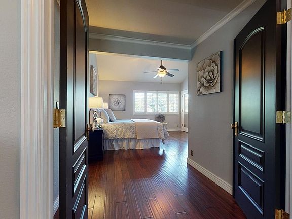 Come home to your turn-key 3bed/2.5bath home w/ stunning interior design. Double door entry w/ foyer leads to flowing open floor plan, enhanced exquisite sustainable bamboo floors, elegant plantation shutters, premium solid core doors, crown molding & baseboard throughout. Gourmet kitchen w/ large island & granite countertops. Dual pane windows make a quiet home. Custom cabinets, induction stove, LED lights & farmhouse sink. Dining room overlooks a large, luxurious stone patio/garden with travertine tiles. Living room has gas fireplace & vaulted ceilings. Huge master suite w/ double door entry, his/her closets, mirrored French doors and vaulted ceilings. Dual sinks & walk-in shower. Restoration Hardware 3rd bathroom plus 2 large bedrooms down the hall. New HVAC. Oversized 2 car garage. Tesla Solar (big savings on electric). Prime central location near 280 and 17. Bike the Los Gatos Creek trail to Downtown Campbell and Los Gatos. Short drive to Santana Row/Valley Fair and shops. Near Valley Medical and other new developments.