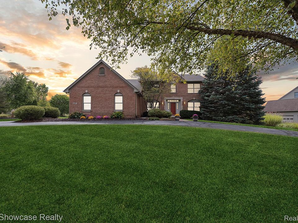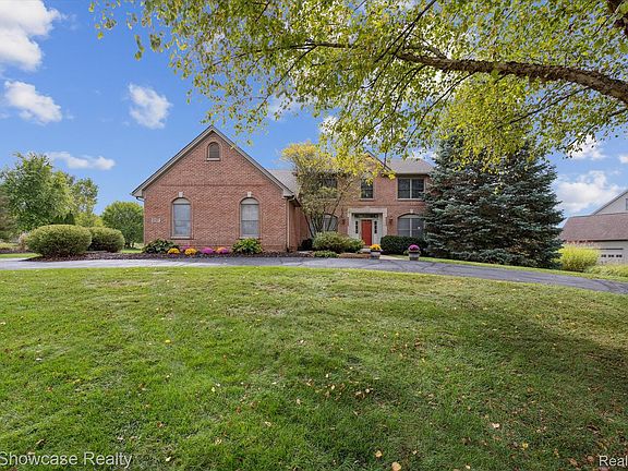 Showings Start Sat., 10/25/25. This beautiful brick home is situated on over an acre of land on a quiet cul-de-sac. It features four spacious bedrooms & three & a half baths, along with a walkout basement. The open-concept main floor showcases newer tongue and groove white oak flooring, updated kitchen with Wi-Fi–enabled stainless steel appliances, granite countertops, & a tile backsplash. The kitchen opens to a stunning great room with a gas fireplace, a full wall of windows, high ceilings, & custom built-ins. Just off the kitchen is a versatile room that can serve as an office, study, or flex space. Completing the main floor are a large dining room, a comfortable living room, a laundry area, & a half bath. Upstairs, you’ll find four generously sized bedrooms. The primary suite includes a walk-in closet, an ensuite bath, & a desirable sitting area or additional office space filled with natural light. The remaining three bedrooms share a full bath. Accessible through the primary closet is an unfinished room/attic, offering additional storage space. The finished walkout lower level is perfect for entertaining or working out. It features a wet bar, spacious living area, & an additional full bath. A doorwall opens to a paver patio with a built-in fire pit, ideal for relaxing or gathering with friends. There’s also a generous storage area for added convenience. Let’s highlight the outdoor space! This home boasts stunning curb appeal with a circular driveway & a three-car garage. Enjoy a large deck overlooking the expansive backyard, which is full of wildlife & natural beauty. Roof, hot water tank, furnace, a/c, flooring, all less than 10 years old.