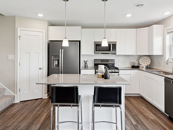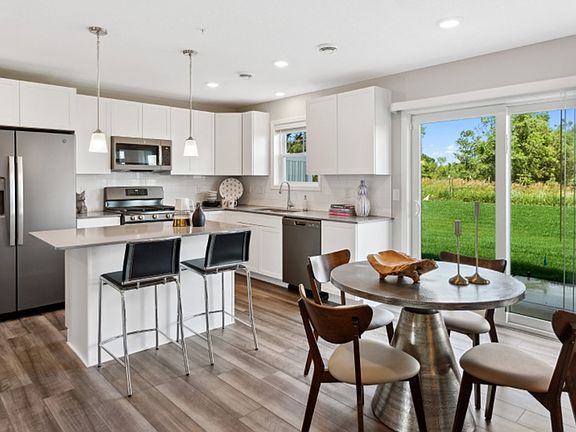 Recently constructed high end 3 bedroom plus large loft townhome in Wayzata School District. This 2 story townhome has an open floor plan with plenty of natural light, beautiful kitchen with pantry, slate appliances, White cabinets, quartz counter tops, subway tile backsplash and center island. This home includes, blinds, electric fireplace and a home automation package. The first floor features an open-plan layout among the Great Room, dining room and kitchen, which has a rectangular center island. A large coat closet in the foyer offers convenience. Upstairs are three bedrooms including the owner's suite and a centrally situated spacious loft that adds shared living space. It has an upper level laundry room. Enjoy the beautiful sunsets from your back patio!