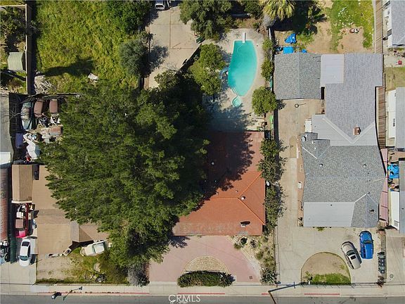 NEW PRICE $689,000. Back on market. Buyer unable to perform. Vacant Land with an existing home on front of lot. Total square footage estimated to be 49,114 which includes 2 separate parcels. Per assessor maps- front parcel lot size is 71.75 x 208, rear parcel 146 x 234. Totals 49,114 (not taped, buyer to verify). Original owner- Home is 3 bedrooms, 2 baths, 1350 sqft. 2 car garage has been split into a workshop and possible 4th bedroom. Pool & covered patio. Other features include: Roof mounted central AC, granite kitchen counters, fruit orchard in rear including: Orange tree, Blood Orange, Lime, Guava, Tangerine, red & pink pomegranate trees, loquats, cumquat, 2 huge macademia nut trees, Lemon Tree, huge white berry tree in rear plus 2 avocado trees. Value in land. Water district offered to purchase property to store trucks. Suggested uses buyer should investigate and confirm with city and county: High density development, mini-Mobile Home Park, RV Storage, Horse Ranch. Buyer to verify use. Seller or listing agent make no representations on use, buyer MUST verify.