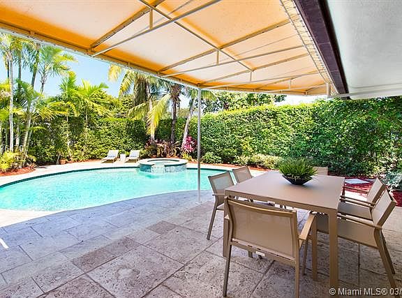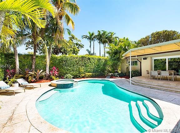 Beautifully Updated family home in desirable Northeast Miami Shores location! Large 3bed/2bath pool home with an open floor plan. Spacious kitchen includes granite countertops, high end stainless steel appliances and built in office/workspace or breakfast counter. Large bedrooms with tons of natural light and plenty of closet space. Remodeled bathrooms with rain showers, travertine tiled floors and double sinks. Electric shades, Impact windows and doors, New landscaping, 2 car garage, Freshly painted, Copper gutters, camera and speaker system too! Private l Lush landscaped backyard with alley access. Move right in! This beauty won't last.