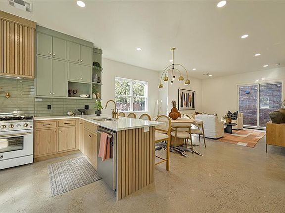 Builder offering $10k in Buyer's closing cost! Discover modern urban living at its finest in this exceptional new construction home located in the heart of Oklahoma City. Perfectly positioned within walking distance to the vibrant Western Ave District and just minutes from Classen Curve and several other OKC entertainment areas, this home places you at the center of it all. Enjoy the best of city life right at your doorstep. Step inside and be welcomed by a striking curved wall and sleek curated concrete floors that set the tone for this architectural masterpiece. The open-concept layout seamlessly connects the kitchen, dining, and living areas under soaring 10-foot ceilings, creating a bright and airy atmosphere ideal for entertaining or relaxing. The kitchen is a true showpiece, featuring custom white oak and designer color cabinetry, color matched tile, a stylish white range, and an elegant arched detail that adds a touch of sophistication. With a spacious pantry, a tucked-away refrigerator, a coffee bar, and a convenient breakfast bar off the dining area, this kitchen is both functional and beautiful. The living and dining areas are designed for comfort and connection, featuring large windows and sliding glass door that open to a private patio. Off the garage, a mud bench and half bath adorned with eye-catching wallpaper provide both convenience and style. Upstairs hosts the luxurious primary suite, two bedrooms, a hall bath, and a laundry. The primary suite impresses with its raised ceiling, oversized closet, and private balcony. The spa-like en suite bathroom is a serene retreat with a double vanity, walk-in shower, and a floating soaking tub. The outdoor space is equally stunning, with a retractable awning, custom concrete, and turf accents for a modern, high-end feel. The patio is accessible from both the living and the garage, which can easily serve as an additional outdoor living. A covered parking area and extended driveway provide ample parking options.