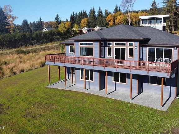 Newer Home Constructed in 2022, Nestled in a prime location with breathtaking, panoramic views from the Homer Spit to the Cook Inlet, this expansive 3,708 sq ft home offers a luxurious lifestyle with stunning natural beauty. Enjoy the changing scenery from sunrise to sunset through tall ceilings and large windows designed to capture the ever-evolving landscape of each season.The private primary suite is a true retreat, featuring a spacious walk-in closet and a spa-inspired ensuite with a walk-in tiled shower, garden soaking tub, and double Quartz top vanity perfect for relaxation after a long day. The thoughtful floor plan that places all the main living areas on the entry level for easy access and flow. The chef's kitchen is a standout, with built-in commercial-grade appliances, Quartz counter tops and an abundance of prep space. Miele Fridge, Jennair Built-in Ice Maker, Fisher & Paykel double drawer dishwasher and 8 Burner Range with Double Oven! A secret butler's pantry ensures plenty of room for storage and meal preparation, ideal for hosting family and friends. The large, finished walkout basement offers versatile space, whether you need additional living space for a growing family or are considering a multi-generational home setup. This expansive area provides endless possibilities for customization. Additionally, the attached Oversized Double Car Garage offers ample space for vehicles and storage. Massive is an understatement for all the unfinished storage area for all of your Storage needs! or finish and convert in to a useful space for you! Key Features: 3,708 sq ft of living space 650 sq ft attached garage Convenient location just minutes to shopping, recreation and hospital. Unobstructed views from the Homer Spit to the Cook Inlet Private primary suite with walk-in closet and luxurious ensuite Chef's kitchen with commercial-grade appliances and secret butler's pantry Spacious, finished walkout basement with multi-generational potential Thoughtful floor plan with all main living areas on the entry level High ceilings and large windows throughout Don't miss the opportunity to make this exceptional property your own and enjoy the perfect blend of luxury, privacy, and stunning views.