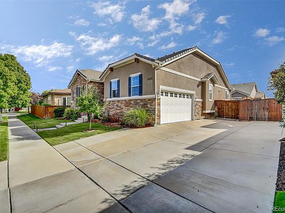Welcome Home! You won't want to miss this wonderful 5 bedroom home in The Villages at Buffalo Run! Low maintenance living. Enjoy a large kitchen island, open to the living room with a warm fireplace, spacious built-ins and hardwood floors. Designated "Tech Space" off the kitchen, could easily be transformed into a bar area. There are plantation shutters throughout the main level. The primary bedroom with a 5 piece bath and large walk-in closet is on the main level, as well as two additional bedrooms, a full bathroom with double sinks, laundry room. Third bedroom on the main level could also be used as an office, Glass double doors can be reinstalled. The finished basement has a great “Mother-in-law”/extended family area with a living space and kitchenette with a full size refrigerator and microwave. Additionally there are two bedrooms and a full bathroom. The backyard has a gardening shed and planter boxes for someone with a green thumb. The roof is concrete tile. New Double Ovens and Tankless Water Heater. Walking distance to the park. Near the golf course, Bison Ridge Recreation Center, and DIA. Seller is motivated.