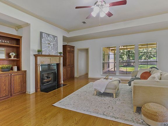 MOVE IN READY! WHOLE HOUSE GENERATOR! NEW ROOF! Spacious YARD! DID NOT FLOOD! Bright, Spacious 4BR Home in Lakes at St. Amant — Entertainer’s Dream! Beautifully maintained 4BR/2BA split floorplan in Lakes at St. Amant with fresh interior paint and a NEW ROOF. Open-concept living area filled with natural light, featuring a fireplace with wood surround mantle and built-ins. Eat-in kitchen offers granite countertops, center island with bar seating, and lots of cabinet space. Oversized primary suite includes dual vanities, soaking tub, and custom tile shower with seamless glass door. Hall bath has new tub tile surround. Tesla charging station in garage, 24W Generac whole-home generator, washer and dryer to remain and never flooded (no flood insurance per LOMA). Large covered patio with ceiling fans overlooks the fully fenced backyard — perfect for entertaining!