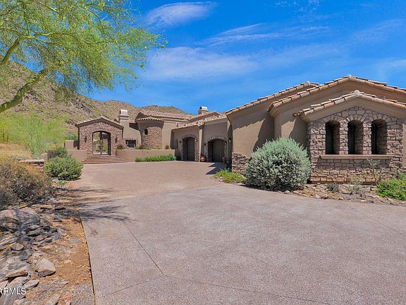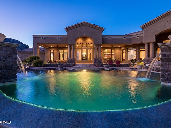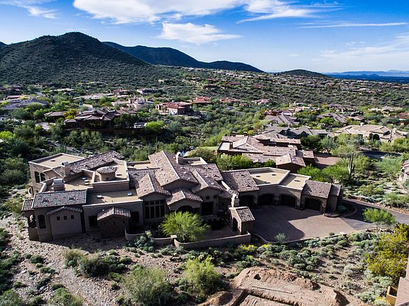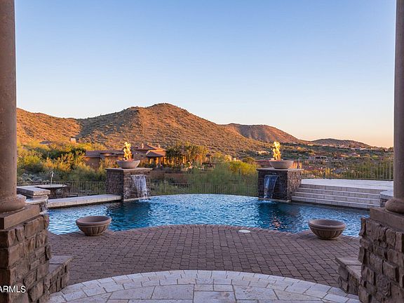 Perched on a 1.2-acre hillside lot in the exclusive guard-gated community of The Retreat at 100 Hills in McDowell Mountain Ranch, this meticulously remodeled Modern Mediterranean estate offers luxury living with mountain and city light views.