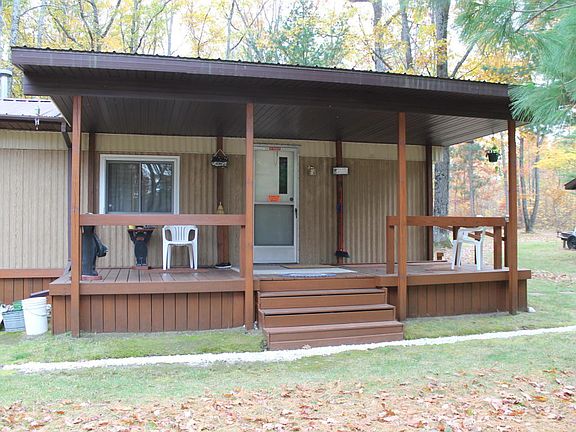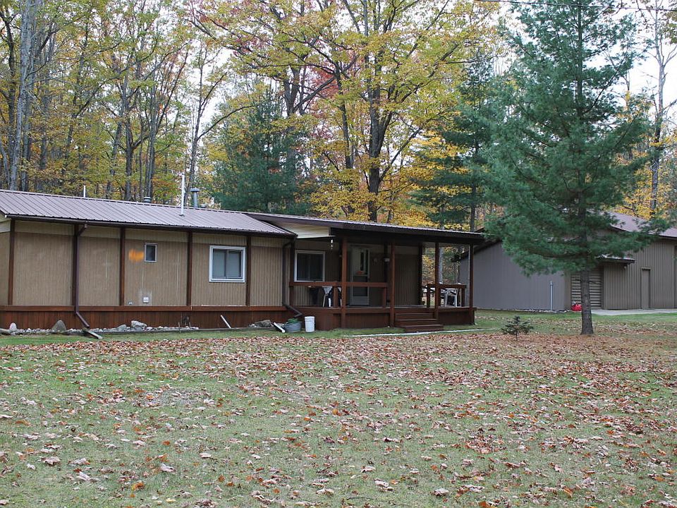 With state land on 3 sides of this 10 acre parcel, there is plenty of deer signs and other wildlife. There are nice trails through the beautiful woods with a mixture of oaks, maples and pines. Three hunting blinds are ready to go. The home has 2 bedrooms and a nice added on sunroom. It has been very well maintained and the pole barn offers lots of room for storage and parking. The mobile, barn and garage have a steel roof over them. There is also a front and back deck. Very peaceful setting.