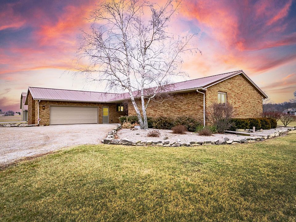 Welcome to this meticulously maintained all-brick home, set on 3.6 acres of beautiful country landscape scattered with pear, apple & persimmon trees. Boasting a 2-car oversized attached, insulated & heated garage, this property offers not only space but also efficiency with metal roofing on all buildings plus a 2-year-old Generac 22 KW natural gas whole house generator ensures peace of mind. Step inside to discover the allure of new hardwood flooring, complemented by the warmth of new interior and exterior light fixtures. The main level reveals thoughtful updates, including new outlets and switches. Pella Windows grace every corner, inviting natural light to dance through the home. Stay comfortable year-round with a 3-year-old central air unit. The sunken living room creates a cozy retreat, and the eat-in kitchen becomes the heart of the home. Venture downstairs to a full finished basement, a testament to attention to detail throughout. For those seeking versatility, a kitchenette in the basement opens possibilities for a Mother-In-Law Suite along with the warm soapstone wood burning stove. The property extends its appeal outdoors with 2 outbuildings, perfect for ample storage. Embrace the convenience of an included R/O System and the joy of having all appliances included, including a chest freezer, garage refrigerator plus washer & dryer. But there's more – the deal sweetens with the inclusion of all lawn tractors, equipment and tools needed to maintain this pristine property. This is not just a house; it's a meticulously crafted lifestyle awaiting its next fortunate owner. Schedule a showing and make this haven yours today.