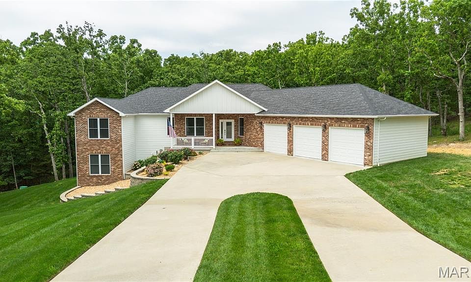 Nestled at the end of a cul-de-sac in Phase II of the highly sought-after Quarry Subdivision, this stunning custom home built in 2021 is loaded with upgrades and sits on a private 1.6 acre lot! Offering 5 spacious bedrooms and 3.5 baths, the home features a 3-car oversized garage, bonus John Deere garage, outdoor fire pit, covered front patio, concrete circle drive, new roof, and more. Inside, you'll find an open-concept layout with a chef’s kitchen boasting quartz countertops, with a waterfall style on the island, a massive pantry, coffee bar, and built-in appliances! Other highlights include (2) 3-season rooms, upgraded with marble countertops in bathrooms, vinyl flooring throughout, ceiling fans in every bedroom, & a sauna, walk-in shower, and custom closet in the main-level primary suite! The finished basement features two bedrooms, a custom bar, game room, wine cellar/safe room, and second laundry! This immaculate home has meticulously maintained!!! All of this located just minutes from town, I-44, and the golf course... including access to The Quarry lakes/ponds! Homes like this rarely hit the market. Schedule your private showing today!