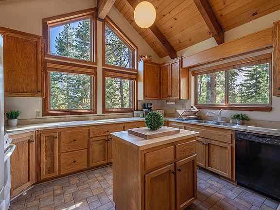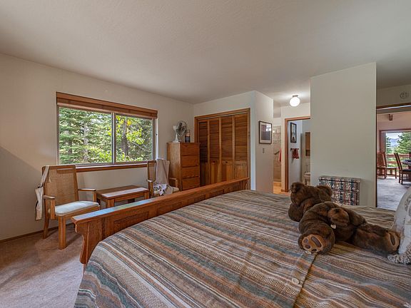 Nestled within the natural beauty of Tahoe Donner, this 4-bedroom, 2.5-bathroom retreat exudes warmth and tranquility. Abundant natural light floods through large windows, illuminating the high ceilings and creating an open, inviting atmosphere. The spacious living room, complete with a cozy stone fireplace, beckons for relaxation. A well-equipped kitchen and comfortable bedrooms ensure your utmost comfort. Outside, a generous deck is perfect for outdoor dining and enjoying the mountain air. Located conveniently for both winter and summer adventures, this home offers an ideal blend of relaxation and adventure in the heart of Tahoe Donner.