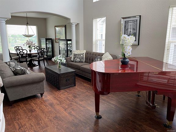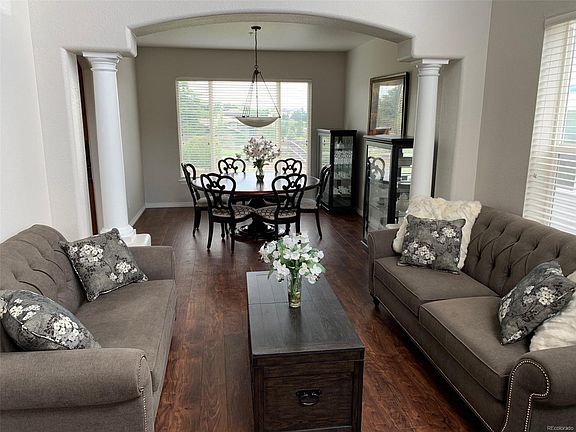 Incredible Panoramic Views of Mountains & Golf Course! Gated Community! Backs to Golf Course! Cul-de-Sac! Grand Entry! Soaring Ceilings! Curved Staircase! Gourmet Kitchen with Upgraded Cabinets! Stainless Steel! Large Center Island with Breakfast Bar! Spacious Breakfast Room Great Views! Hardwood & Tile Flooring! Large Family Room with Fireplace! Spacious 2 Story Living Room! Formal Dining Room! Main Floor Study! Huge Master Suite with Retreat & Incredible Walk-in Closet! Large Master Bath with Walk-in Shower! Spacious Secondary Bedrooms! Large Loft Upstairs! Designer Carpet & Paint! Large Private Flat Yard! Views of Golf Course and Front Range Mountains! Walk to Golf Course & Park! Close to Rec Center & Community Pool! Minutes From Parker, Shopping & Restaurants!