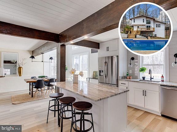 Offer Deadline 3 pm Friday. See what all the hype is about with this home that blends rustic and modern designs so well that you'll feel like you've transcended into a copy of Dwell magazine. All professionally curated by Design & Installation Group. Located on three private acres, complete with an in-ground pool and surrounded by mature landscape, this property will have you at "hello." Upon entry, you'll feel an overwhelming excitement to explore all this super chic floor plan offers, from the floor-to-ceiling windows in the foyer to the exposed beams and white oak (LV) flooring throughout the main living area. The kitchen is marvelous, boasting a center island, custom-built range hood, stunning stone counters, and gorgeous backsplash. The primary suite has a private sitting room/den/office with views of the swimming pool and an ensuite bathroom with a walk-in shower that exudes resort-style vibes. The living room is genuinely five-star rated with exposed beams, a fireplace, and expansive wooded views; think Frank Lloyd Wright. The fun doesn't stop there, invite all of your favorite guests and enjoy an afternoon at your poolside oasis outfitted with an enormous deck and separate alfresco dining pad. The home is just a few short miles from all North Beach offers its own Farmer's Market, sandy beaches, fantastic shops, restaurants, and Chesapeake Beach's water park! If it's coastal living you're seeking, look no further. (Conveniently located for those employed in Washington DC, Andrews AFB, PAX River Naval Air Station, Annapolis, or Baltimore. ) . Call today for your private tour. (BRAND NEW SEPTIC SYSTEM AND WELL PUMP)