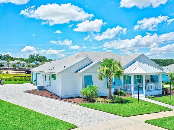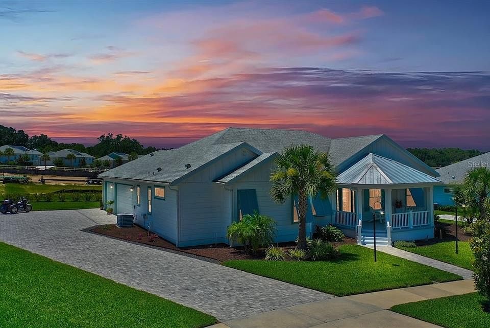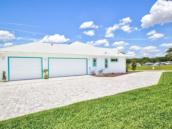 Why settle for ordinary when you can live every day as if you’re in the Florida Keys? This stunning 3-bedroom, 2-bathroom residence offers 2,234 square feet of thoughtfully designed living space on a .37-acre lot, blending coastal-inspired style with modern efficiency. From the moment you arrive, the neighborhood’s colorful Florida Keys vibe sets the tone, with vibrant exteriors and architectural details that transport you to island living. This home stands out even further with its oversized front porch, Bahama shutters, and curb appeal that feels both relaxed and refined. Step inside and you’ll discover a home that combines comfort, elegance, and smart upgrades. The living room immediately impresses with a tray ceiling finished in tongue-and-groove plus beams a distinctive feature rarely found nearby. Crown molding flows through the family room, dining area, and kitchen, while wood trim around all interior windows adds an extra layer of craftsmanship and style. At the heart of the home, the kitchen is designed to impress. An oversized kitchen island with stunning Cambria quartz countertops is the centerpiece, ideal for entertaining, meal prep, or casual dining. A striking wood-vented range hood, premium appliances, and a built-in pantry with custom shelving complete this chef’s kitchen, blending beauty with everyday function. The owner’s suite is a true retreat, featuring its own tray ceiling, a custom-built walk-in closet, and a spa-like en suite bath. Two additional bedrooms and a second full bath provide comfort for family or guests. Throughout the home, durable waterproof laminate flooring offers both style and easy maintenance. Energy efficiency takes center stage with a full solar array, smart home technology, and hurricane-rated windows delivering safety, comfort, and little to no electric bills. Outdoor living is just as inviting. Enjoy morning coffee or evening breezes on the oversized front porch, or entertain on the screened lanai overlooking the backyard. In addition, the property sits slightly higher in elevation, which not only enhances the beautiful sunset views, but also provides peace of mind of being outside of the flood zone. The generous yard offers flexibility to create a private oasis tailored to your lifestyle — whether that means future privacy enhancements, lush landscaping, or space for outdoor entertaining. A true highlight of this home is the oversized 3-car garage with epoxy flooring, offering abundant space for vehicles, golf carts, storage, or water toys — the kind of flexible space that perfectly complements Florida living. Recently built in 2021, the home remains fresh, modern, and low-maintenance, with some features still under warranty and an additional 1-year home warranty is provided for extra peace of mind. Every detail has been carefully chosen to combine functionality, efficiency, and timeless beauty. Located just minutes from The Villages, with easy access to shopping, dining, and entertainment, this home offers both tranquility and convenience. This is more than a home — it’s a lifestyle. With its Florida Keys-inspired design, solar-powered efficiency, refined finishes, and rare upgrades, this property offers an opportunity to own one of the most unique and desirable homes in the neighborhood. Best of all, the community pool is just down the street, offering a resort-style experience that’s both convenient and maintenance-free.