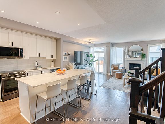 Stunning Valecraft townhome offering over 2,100 sq. ft. of stylish living space in the heart of family-friendly Stittsville. Nestled on a quiet crescent, this 4-bedroom, 4-bathroom home is just minutes from top-rated schools, scenic parks, nature trails, and all the shops and amenities. From the moment you arrive, you'll be impressed by the extended interlock driveway and welcoming front porch. Step inside to a bright, spacious foyer with convenient powder room and garage access. The stylish kitchen with high-end SS appliances, quartz countertops, a walk-in pantry, oversized island, and chic subway tile back splash perfect for everyday living and entertaining. The open-concept living and dining areas feature gleaming hardwood floors and a cozy gas fireplace that creates a warm, inviting atmosphere. Upstairs, discover 3 generous bedrooms, a full family bath, and a laundry. The primary bedroom boasts a 4-piece en-suite with glass shower, soaker tub, and a walk-in closet. The fully finished lower level offers even more versatility, with a full bath and spacious 4th bedroom. Step outside to your private, landscaped backyard complete with an interlock patio and gazebo perfect for summer evenings and family gatherings. A perfect blend of modern elegance, comfort, and convenience this home truly has it all. Don't miss your chance to make it yours!
