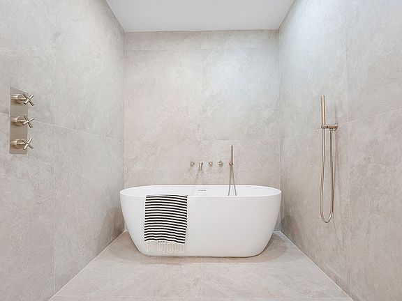 Oversized windowsPrivate terraceLandscaped backyardWide-plank white oak floorsCentral heating and coolingSpa-like en-suite bathSerene rear-facing primary suite