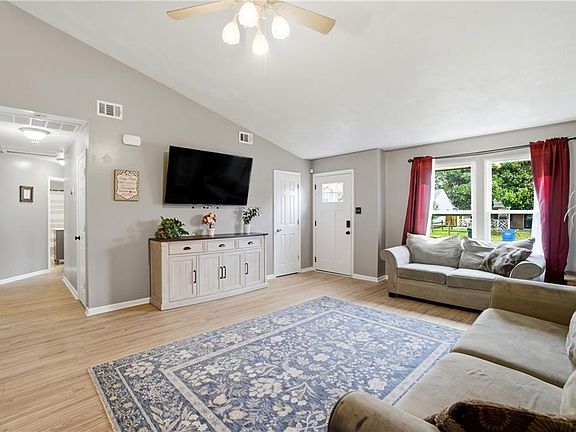 Front paver patioTwo shedsLarge pantryVaulted ceilingAdditional closetWaterproof wide plank flooringLarge deck with pergola