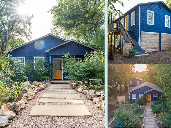 Nestled in the heart of vibrant East Austin, this iconic 1938 home effortlessly blends historic character with modern updates. Situated on a generous 0.23-acre lot, the main house features reclaimed cedar and beadboard detailing, showcasing timeless craftsmanship throughout. With two spacious bedrooms and two full bathrooms - including a vintage clawfoot tub and a modern walk-in shower - this home has been thoughtfully upgraded with new PEX plumbing, energy efficient windows and updated electrical, preserving its historic soul while delivering modern comfort and peace of mind. A detached garage apartment with a flexible studio space below adds incredible versatility. With a new roof, updated systems, and abundant potential, this secondary structure opens the door to multiple living options. Upstairs, the garage apartment boasts original hardwood floors, a full kitchen, and ample natural light - ideal as a guest suite or long-term rental. Downstairs, the flex space includes a kitchenette and half bath, perfect for an artist’s studio, yoga room, home office, or easily convertible into a third income-producing unit. Surrounded by native landscaping and secured behind a privacy fence, the oversized lot offers rare potential for expansion - ADUs, tiny homes, or even a pool. An EV charger is already installed, and the property is move-in ready for multi-generational living, homesteading, or investment. Whether you’re looking to live, create, rent, or expand, this East Austin treasure delivers an unbeatable blend of location, character, and future potential.