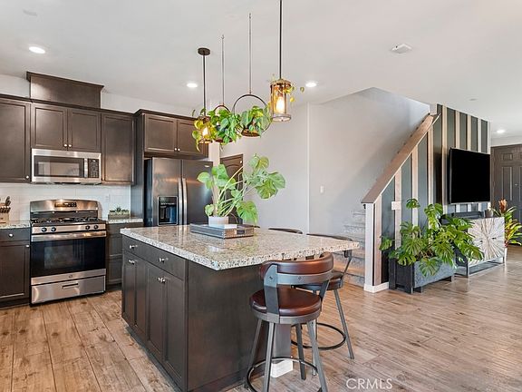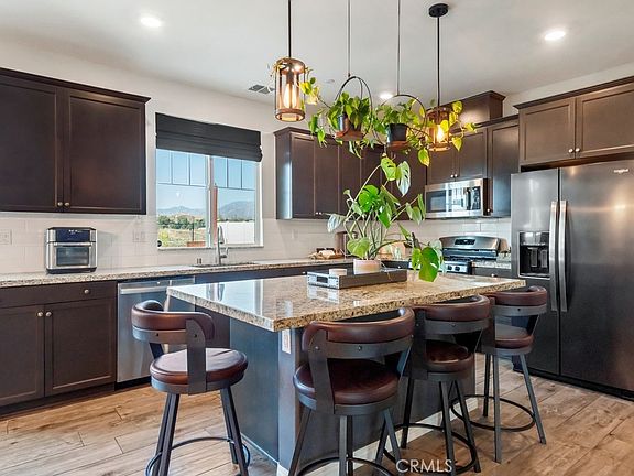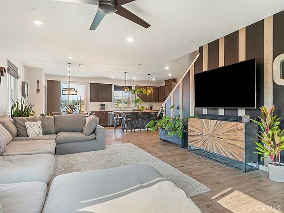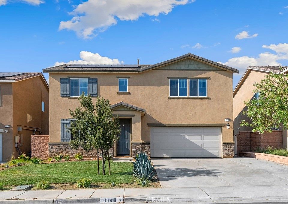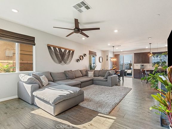 Turn key 4 bed, 3 bath home is ready to be made yours! Recently built in 2020 and offering great curb appeal, Solar Panels, as well as a spacious interior floor plan with a custom paint scheme with feature walls, recessed lights, wood look tile flooring on the main floor and carpet floors in the bedrooms. The living room flows into the kitchen and dining area. The kitchen offers gorgeous granite counters with subway tile backsplash, stainless steel appliances including the gas range/ cooktop, microwave, and dishwasher. There is a center island with bar seating and the dining area has a beautiful chandelier and a slider to the backyard. 1 bedroom and bathroom are located on the main floor and 3 more bedrooms are located upstairs including the large primary suite with herringbone design feature wall and private ensuite with dual walk-in closets, a full-size walk-in shower, and dual sink vanity. There is also a full-size bathroom for the secondary bedrooms to share. Enjoy the huge backyard with paved area and grass area plus no rear neighbors and peaceful mountain and grassland views. Conveniently located near schools, shopping, dining, and also not far from the 10 Fwy. Schedule your private tour today!