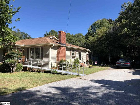 LOCATION, location, location and LAND!!! Rare combination of land and location just off Woodruff Rd near the Shops of Greenridge and I-85/385. This 3br/2ba home sits on 3.7 acres with mature hardwood trees and open fields, all easily accessible as property is positioned on a corner with ample road frontage. Home features spacious sunroom, large utility/mudroom with floor to ceiling custom cabinets, eat-in kitchen, wood burning fireplace in formal living room and cast iron Lincoln stove in den. Original hardwood flooring in majority of house (under carpet) ready to be restored. This home has amazing potential, just waiting on a little restoration and TLC to be transformed. Incredible outdoor living space with that country feel yet close to everything. Home is being sold AS IS. No HOA fees or restrictions! This kind of property is hard to find in the Golden Strip area and has endless possibilities!