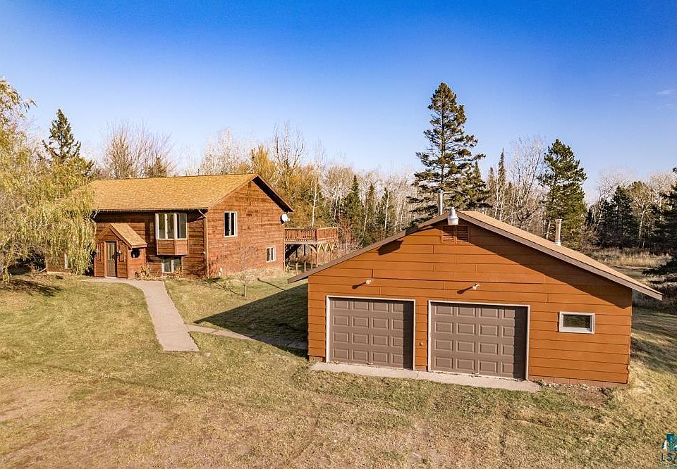 Room to Roam! Welcome to 1148 Shoreview Rd, a stunning, fully remodeled home on 5 acres just minutes from the picturesque town of Two Harbors. This remarkable property invites you to experience the perfect blend of space, comfort, and modern living without having to do anything but unpack. As you step inside, you are greeted into the sweet vestibule room for removing boots and coats. The open-concept floor plan offers a sizable living room that flows seamlessly into a generous dining area, creating an inviting atmosphere for family gatherings or entertaining friends. The heart of the home is this fantastic new kitchen, with granite countertops, upscale appliances, a coffee bar area, and tons of cabinetry. A dream Kitchen makes preparing meals and creating lasting memories a joy. This level features two spacious bedrooms, the primary one with double closets and an entry into the 3/4 bath. Access to the bathroom is also from the hallway. The second bedroom is spacious with a nice-sized closet. A lovely French door leads you to the spacious upper-level deck, where you can soak in the beauty of your surroundings. Venture downstairs to discover an expansive family room with French doors that lead you into the beautiful treed backyard. This space is perfect for movie nights or game days! There are two additional bedrooms, ample closet space, and a new full bath. The layout provides ample space for everyone to enjoy their own retreat while still coming together in shared spaces. The property also boasts an insulated 4-car garage, giving plenty of room for vehicles and outdoor gear, a separate workshop for your hobbies, or creating a home office. There are two heat sources: a propane heater and a wood furnace. Create your paradise of outdoor activities; with skiing, hiking, and snowmobiling trails just a stone's throw away from the home, this property is a nature lover's dream. The Updates include Ne FURNACE, New BATHROOMS, New KITCHEN, New LVT FLOORING, New CARPET, New LIGHTING, FRESHLY PAINTED walls & millwork, New APPLIANCES, Newer PLUMBING, New HARDWARE, and New DOORS. The time is now! This is the home you have been waiting for; call today to schedule your private showing!