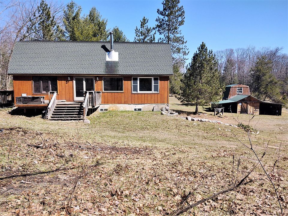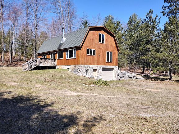 This 12 acre parcel has a unique home situated on Lake Emma with 630' of lake frontage. A very private setting with amazing views, surrounded by trees and state land adjacent on the left side of property. Hardwood floors with solid oak doors and trim. Radiant heat thru out home, wood burning stove, 6'' insulated walls and heated garage with 12' wide insulated doors. Extra storage in the attic plus plumbing for 2 more zones for expansion. A horse barn with electricity, hay loft and there is a lean to out back. Lake Emma offers Bass, Pike, Bluegill and sunfish. Parcel B, an additional 1 acre lot available to buyer totaling lake frontage to 880' and 13 acres. Parcel B purchase price $32,000.